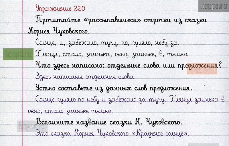 Подробные ответы к 220 упражнению учебника по русскому языку авторов Л.Ф. Климанова, С.Г. Макеева для учащихся 1 класса. От слова к предложению.