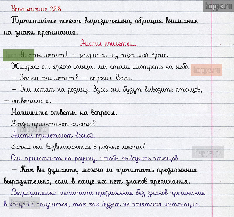 Подробные ответы к 228 упражнению учебника по русскому языку авторов Л.Ф. Климанова, С.Г. Макеева для учащихся 1 класса. Знаки препинания в конце предложения.
