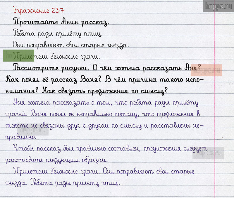 Подробные ответы к 237 упражнению учебника по русскому языку авторов Л.Ф. Климанова, С.Г. Макеева для учащихся 1 класса. От предложения к тексту.