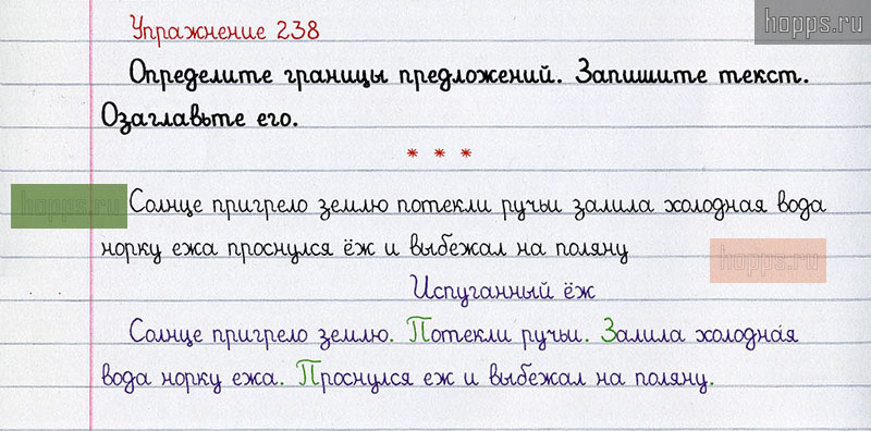 Подробные ответы к 238 упражнению учебника по русскому языку авторов Л.Ф. Климанова, С.Г. Макеева для учащихся 1 класса. От предложения к тексту.