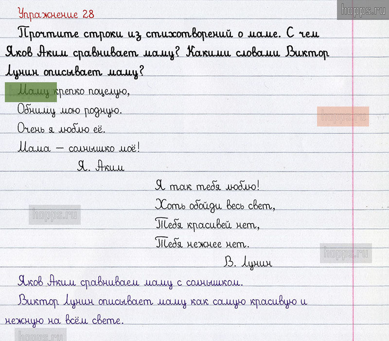 Подробные ответы к 28 упражнению учебника по русскому языку авторов Л.Ф. Климанова, С.Г. Макеева для учащихся 1 класса. Культура общения.