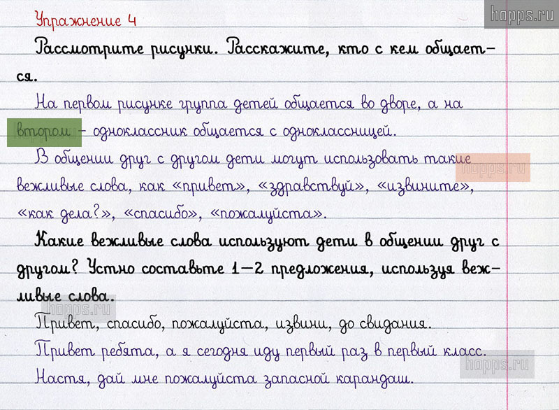 Подробные ответы к 4 упражнению учебника по русскому языку авторов Л.Ф. Климанова, С.Г. Макеева для учащихся 1 класса. Культура общения.