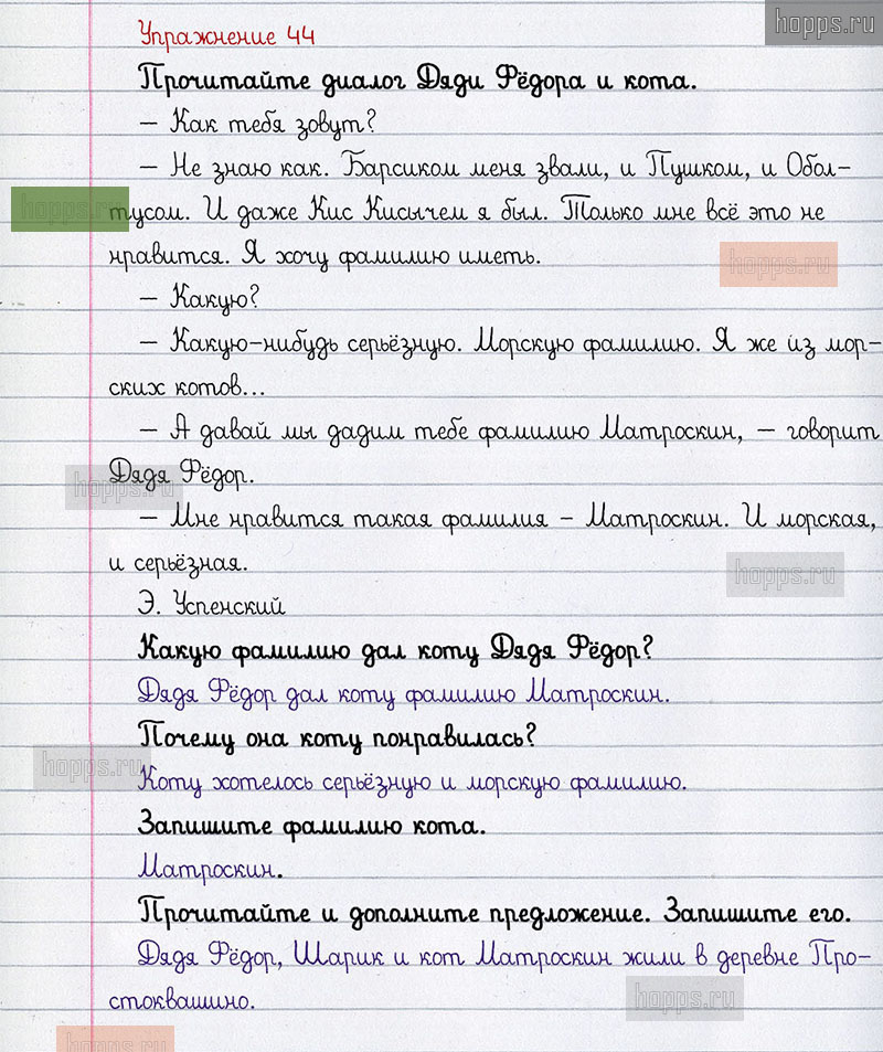 Подробные ответы к 44 упражнению учебника по русскому языку авторов Л.Ф. Климанова, С.Г. Макеева для учащихся 1 класса. Имя собственное.