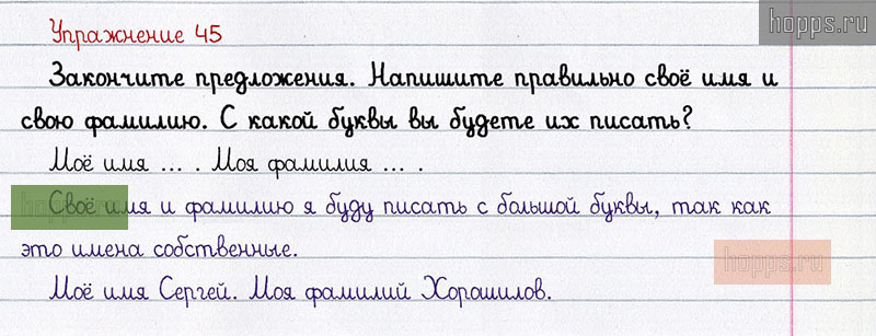 Подробные ответы к 45 упражнению учебника по русскому языку авторов Л.Ф. Климанова, С.Г. Макеева для учащихся 1 класса. Имя собственное.