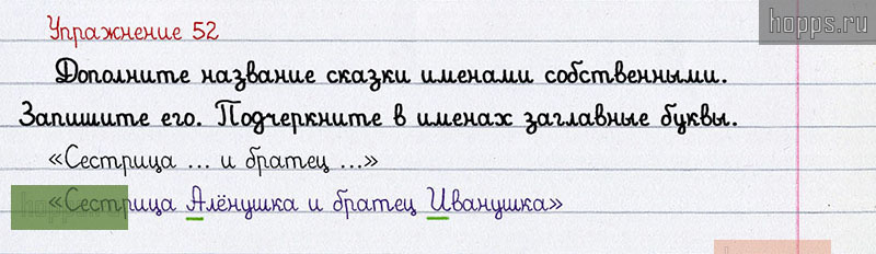 Подробные ответы к 52 упражнению учебника по русскому языку авторов Л.Ф. Климанова, С.Г. Макеева для учащихся 1 класса. Имя собственное.