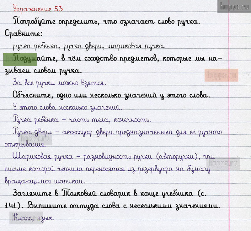 Подробные ответы к 53 упражнению учебника по русскому языку авторов Л.Ф. Климанова, С.Г. Макеева для учащихся 1 класса. Слова с несколькими значениями.
