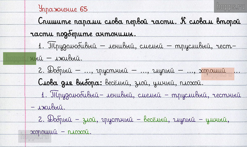 Подробные ответы к 65 упражнению учебника по русскому языку авторов Л.Ф. Климанова, С.Г. Макеева для учащихся 1 класса. Слова и противоположные по значению.