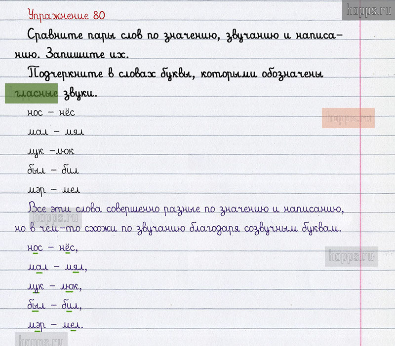 Подробные ответы к 80 упражнению учебника по русскому языку авторов Л.Ф. Климанова, С.Г. Макеева для учащихся 1 класса. Гласные звуки. Обозначение их буквами.