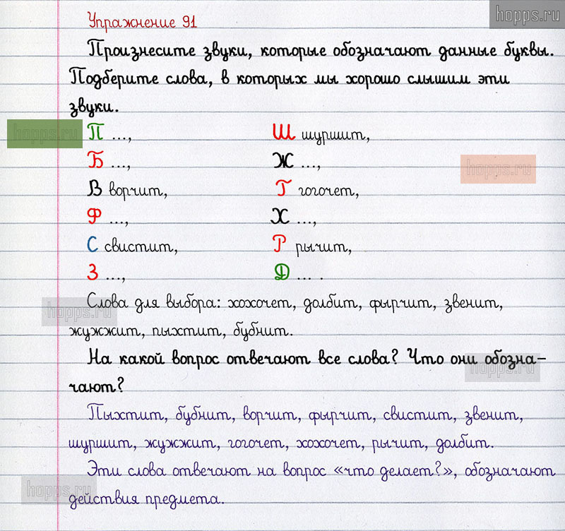 Подробные ответы к 91 упражнению учебника по русскому языку авторов Л.Ф. Климанова, С.Г. Макеева для учащихся 1 класса. Согласные звуки. Обозначение их буквами.