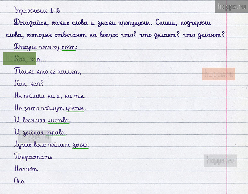 Подробные ответы к 148 упражнению учебника 2020 года по русскому языку автора Т.Г. Рамзаева для учащихся 1 класса. Слова, которые отвечают на вопросы что делает? что делают?