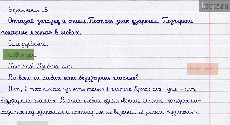 Подробные ответы к 15 упражнению учебника 2020 года по русскому языку автора Т.Г. Рамзаева для учащихся 1 класса. Слово. Предложение. Текст.