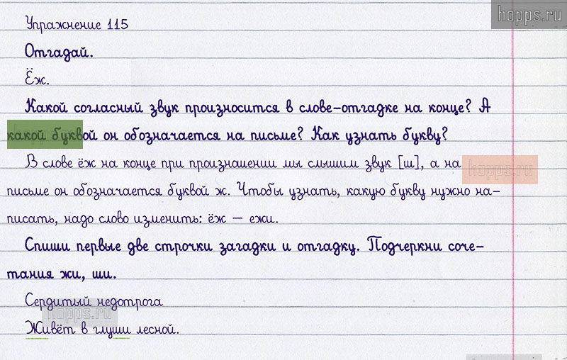 Подробные ответы к 115 упражнению учебника 2008 года по русскому языку автора Т.Г. Рамзаева для учащихся 1 класса. Парные звонкие и глухие согласные звуки. Обозначение парных согласных звуков на конце слова.