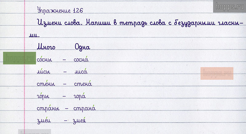 Подробные ответы к 126 упражнению учебника 2008 года по русскому языку автора Т.Г. Рамзаева для учащихся 1 класса. Гласные звуки в ударном и безударном слогах и их обозначение на письме.