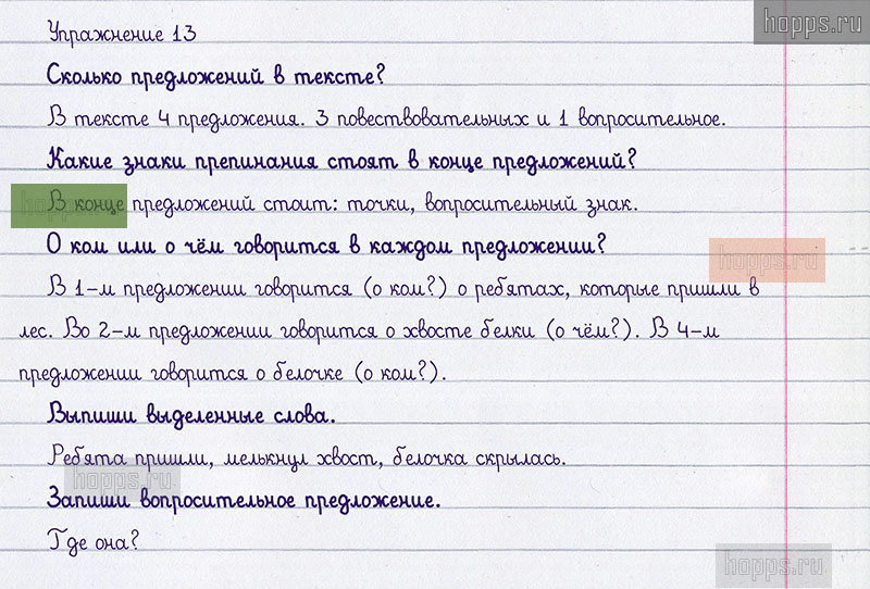 Подробные ответы к 13 упражнению учебника 2008 года по русскому языку автора Т.Г. Рамзаева для учащихся 1 класса. Слово. Предложение. Текст.