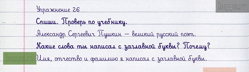 Подробные ответы к 26 упражнению учебника 2008 года по русскому языку автора Т.Г. Рамзаева для учащихся 1 класса. Заглавная буква в словах.