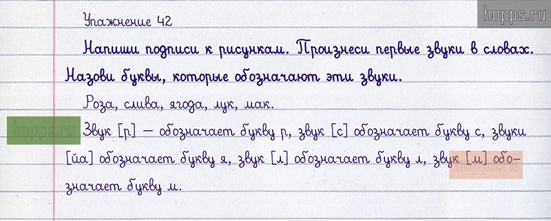 Подробные ответы к 42 упражнению учебника 2008 года по русскому языку автора Т.Г. Рамзаева для учащихся 1 класса. Звуки и буквы.