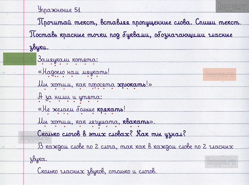 Подробные ответы к 51 упражнению учебника 2008 года по русскому языку автора Т.Г. Рамзаева для учащихся 1 класса. Гласные и согласные звуки. Обозначение звуков буквами.