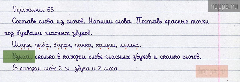 Подробные ответы к 65 упражнению учебника 2008 года по русскому языку автора Т.Г. Рамзаева для учащихся 1 класса. Слово и слог.