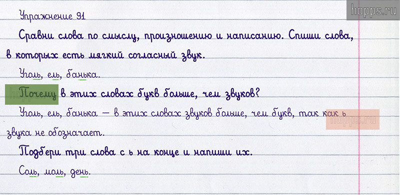 Подробные ответы к 91 упражнению учебника 2008 года по русскому языку автора Т.Г. Рамзаева для учащихся 1 класса. Обозначение мягкости согласных звуков на письме.