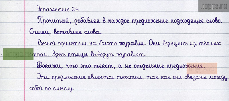 Подробные ответы к 24 упражнению учебника 2020 года по русскому языку автора Т.Г. Рамзаева для учащихся 1 класса. Слово. Предложение. Текст.