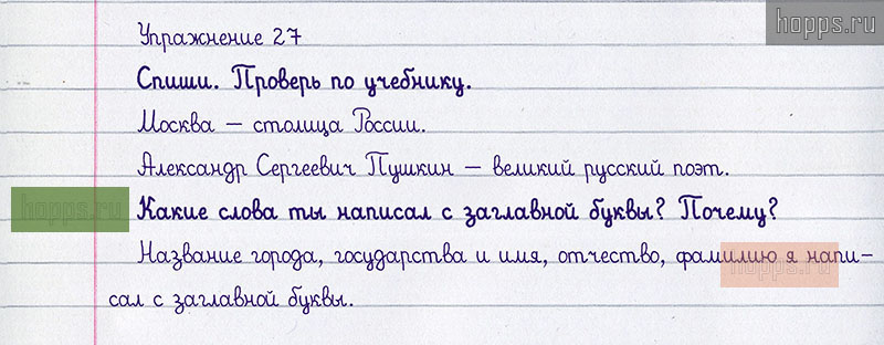 Подробные ответы к 27 упражнению учебника 2020 года по русскому языку автора Т.Г. Рамзаева для учащихся 1 класса. Заглавная буква в словах.