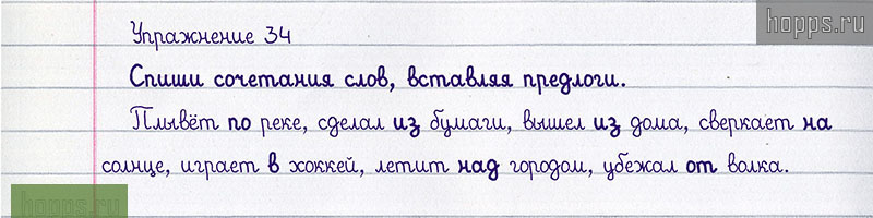 Подробные ответы к 34 упражнению учебника 2020 года по русскому языку автора Т.Г. Рамзаева для учащихся 1 класса. Предлог.