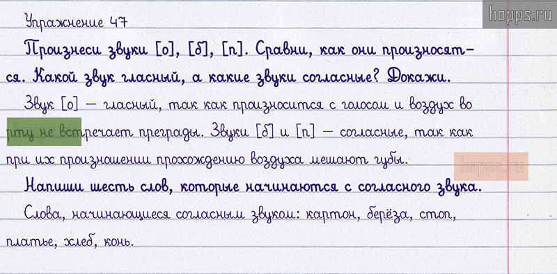 Подробные ответы к 47 упражнению учебника 2020 года по русскому языку автора Т.Г. Рамзаева для учащихся 1 класса. Гласные и согласные звуки. Обозначение звуков буквами.