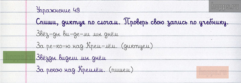 Подробные ответы к 49 упражнению учебника 2020 года по русскому языку автора Т.Г. Рамзаева для учащихся 1 класса. Гласные и согласные звуки. Обозначение звуков буквами.