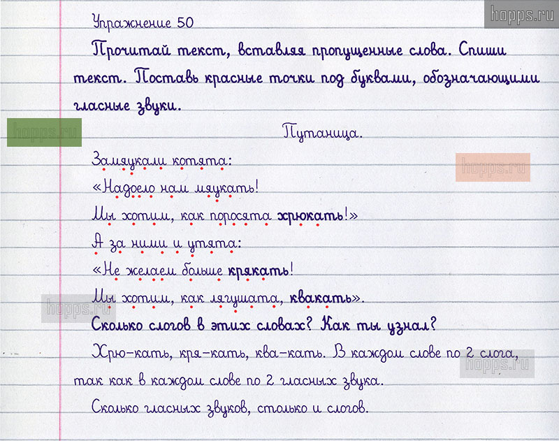 Подробные ответы к 50 упражнению учебника 2020 года по русскому языку автора Т.Г. Рамзаева для учащихся 1 класса. Гласные и согласные звуки. Обозначение звуков буквами.