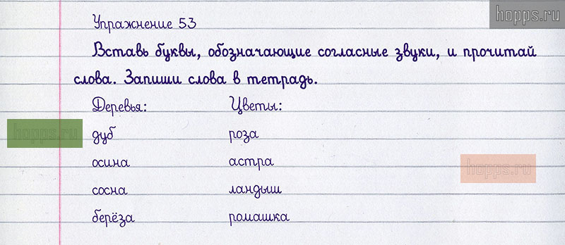 Подробные ответы к 53 упражнению учебника 2020 года по русскому языку автора Т.Г. Рамзаева для учащихся 1 класса. Гласные и согласные звуки. Обозначение звуков буквами.