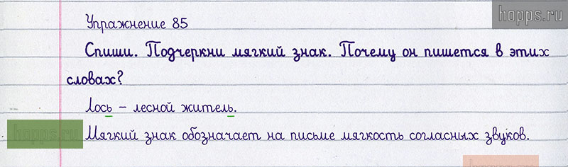 Подробные ответы к 85 упражнению учебника 2020 года по русскому языку автора Т.Г. Рамзаева для учащихся 1 класса. Обозначение мягкости согласных звуков на письме.