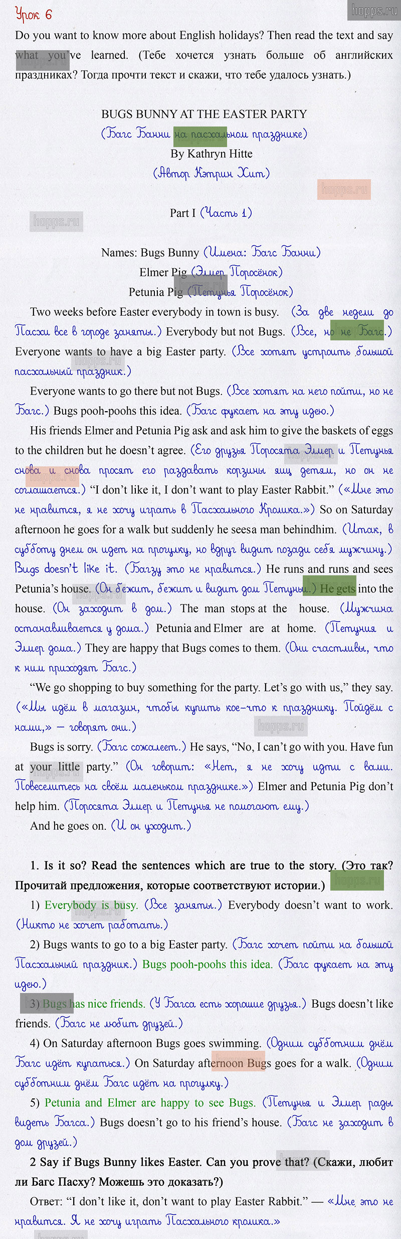 Подробные ответы к заданиям 6 урока книги для чтения по английскому языку авторов И.Н. Верещагина, К.А. Богдаренко, Т.А. Притыкина для учащихся 2 класса.