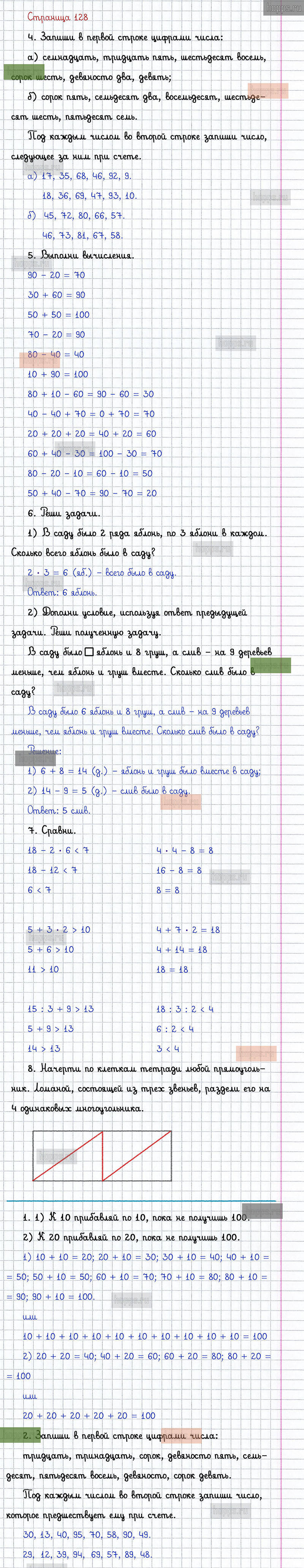 Подробные ответы к заданиям, расположенным на 128 странице 1 части учебника 2019 года по математике авторов Г.В. Дорофеев, Т.Н. Миракова, Т.Б. Бука для учащихся 2 класса.