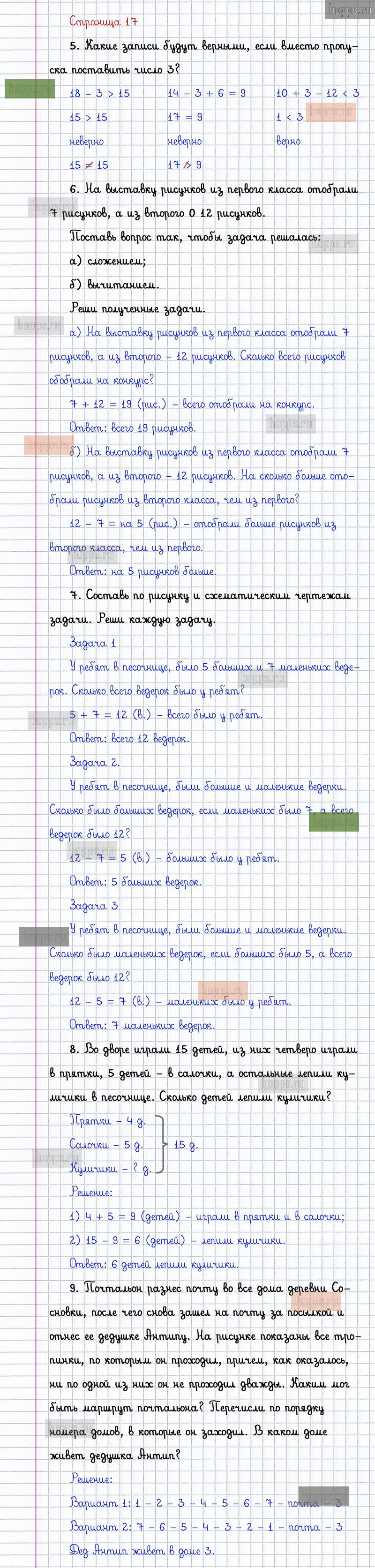 Подробные ответы к заданиям, расположенным на 17 странице 1 части учебника 2015 года по математике авторов Г.В. Дорофеев, Т.Н. Миракова, Т.Б. Бука для учащихся 2 класса.