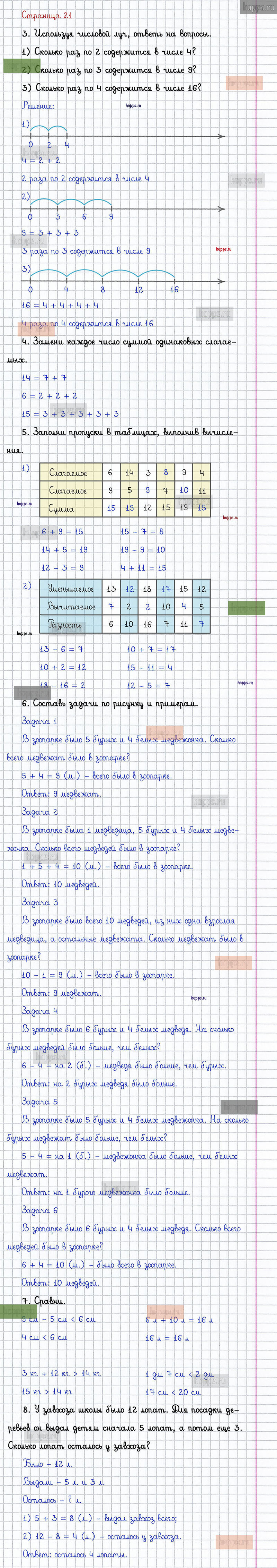 Подробные ответы к заданиям, расположенным на 21 странице 1 части учебника 2015 года по математике авторов Г.В. Дорофеев, Т.Н. Миракова, Т.Б. Бука для учащихся 2 класса.