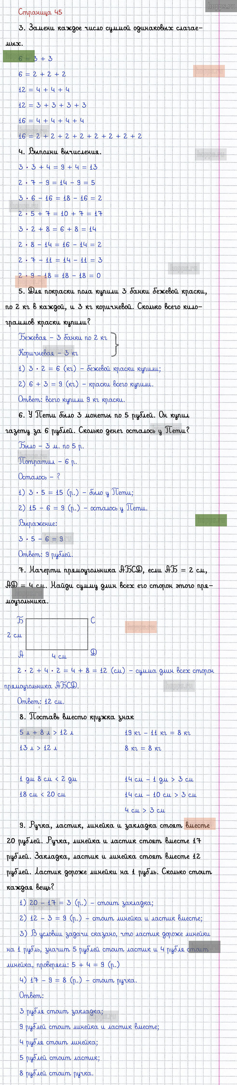 Подробные ответы к заданиям, расположенным на 45 странице 1 части учебника 2015 года по математике авторов Г.В. Дорофеев, Т.Н. Миракова, Т.Б. Бука для учащихся 2 класса.