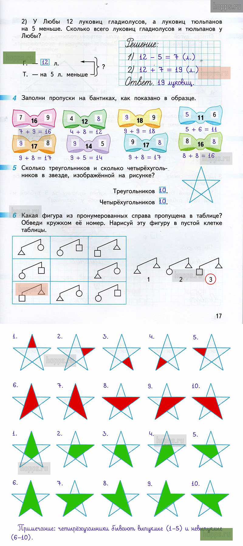 Подробные ответы к заданиям, расположенным на 17 странице 1 части рабочей тетради по математике авторов Г.В. Дорофеев, Т.Н. Миракова, Т.Б. Бука для учащихся 2 класса.