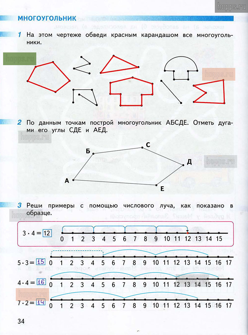 Подробные ответы к заданиям, расположенным на 34 странице 1 части рабочей тетради по математике авторов Г.В. Дорофеев, Т.Н. Миракова, Т.Б. Бука для учащихся 2 класса.