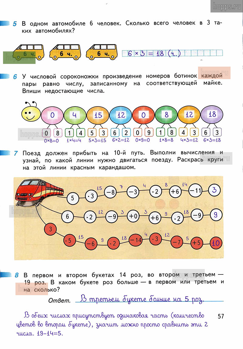 Подробные ответы к заданиям, расположенным на 57 странице 1 части рабочей тетради по математике авторов Г.В. Дорофеев, Т.Н. Миракова, Т.Б. Бука для учащихся 2 класса.