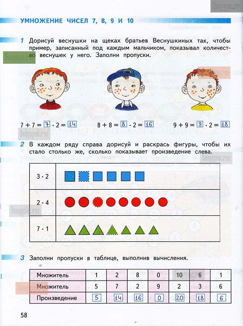 Подробные ответы к заданиям, расположенным на 58 странице 1 части рабочей тетради по математике авторов Г.В. Дорофеев, Т.Н. Миракова, Т.Б. Бука для учащихся 2 класса.