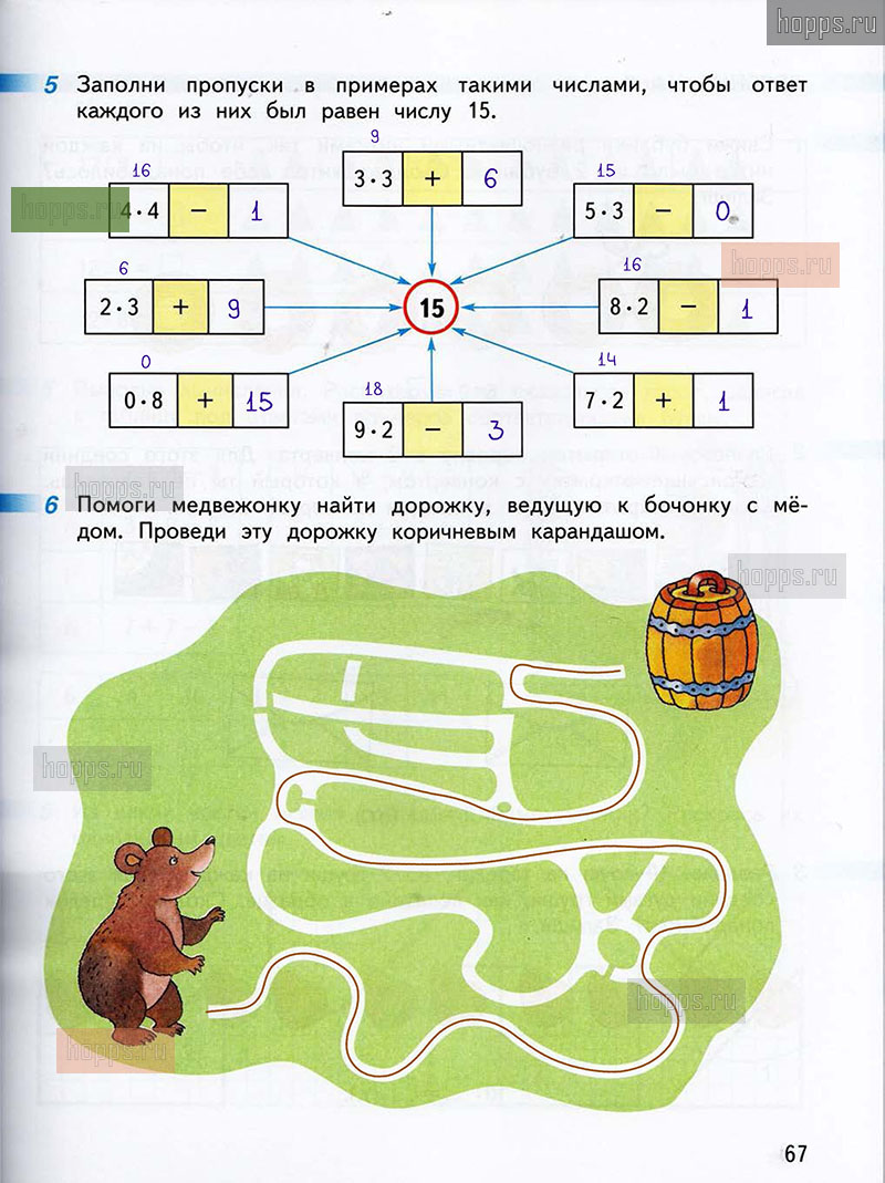 Подробные ответы к заданиям, расположенным на 67 странице 1 части рабочей тетради по математике авторов Г.В. Дорофеев, Т.Н. Миракова, Т.Б. Бука для учащихся 2 класса.