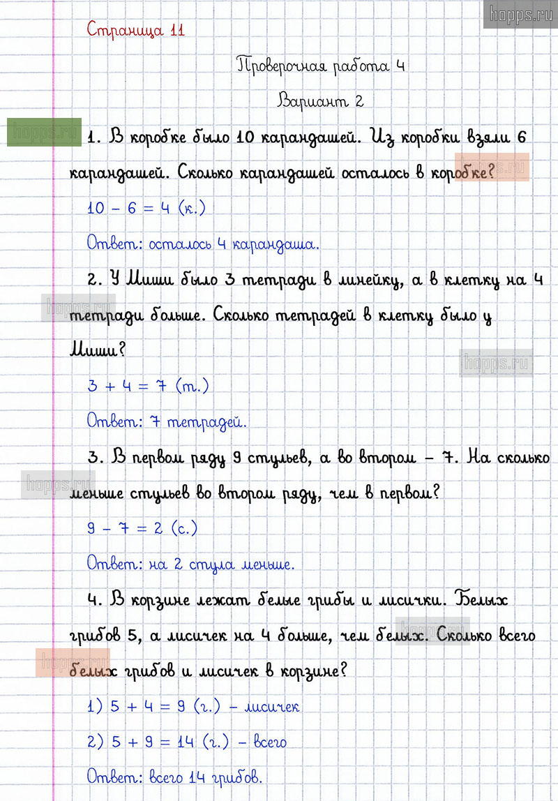 Подробные ответы к заданиям, расположенным на 11 странице проверочных работ по математике авторов С.И. Волкова для учащихся 2 класса. Нумерация. Проверочная работа 4, вариант 2.