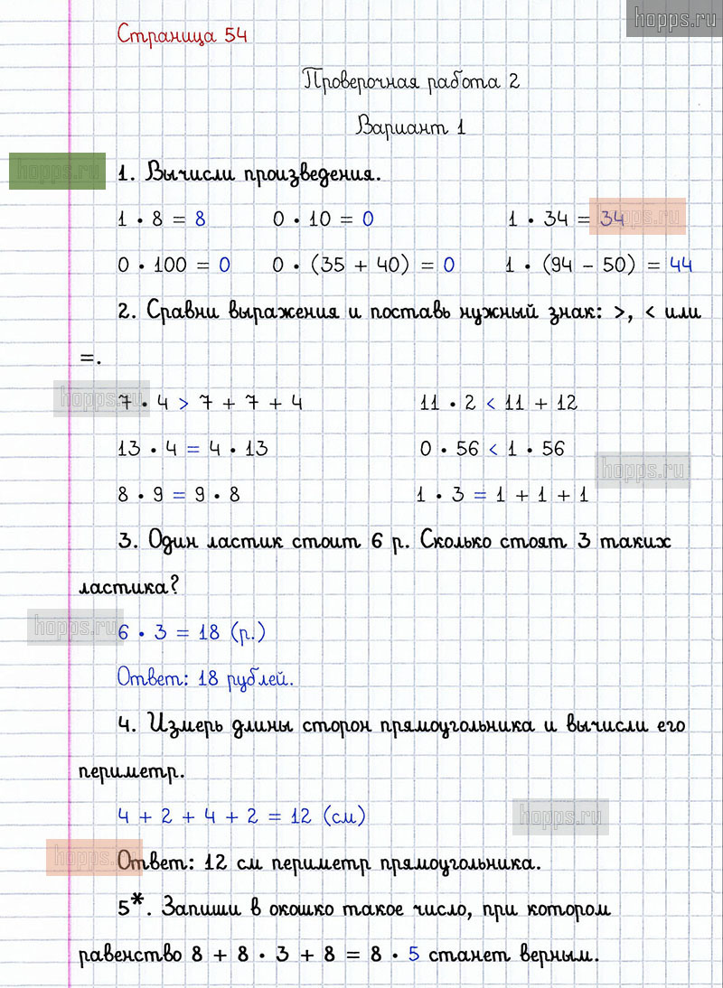 Подробные ответы к заданиям, расположенным на 54 странице проверочных работ по математике авторов С.И. Волкова для учащихся 2 класса. Умножение и деление. Проверочная работа 2, вариант 1.