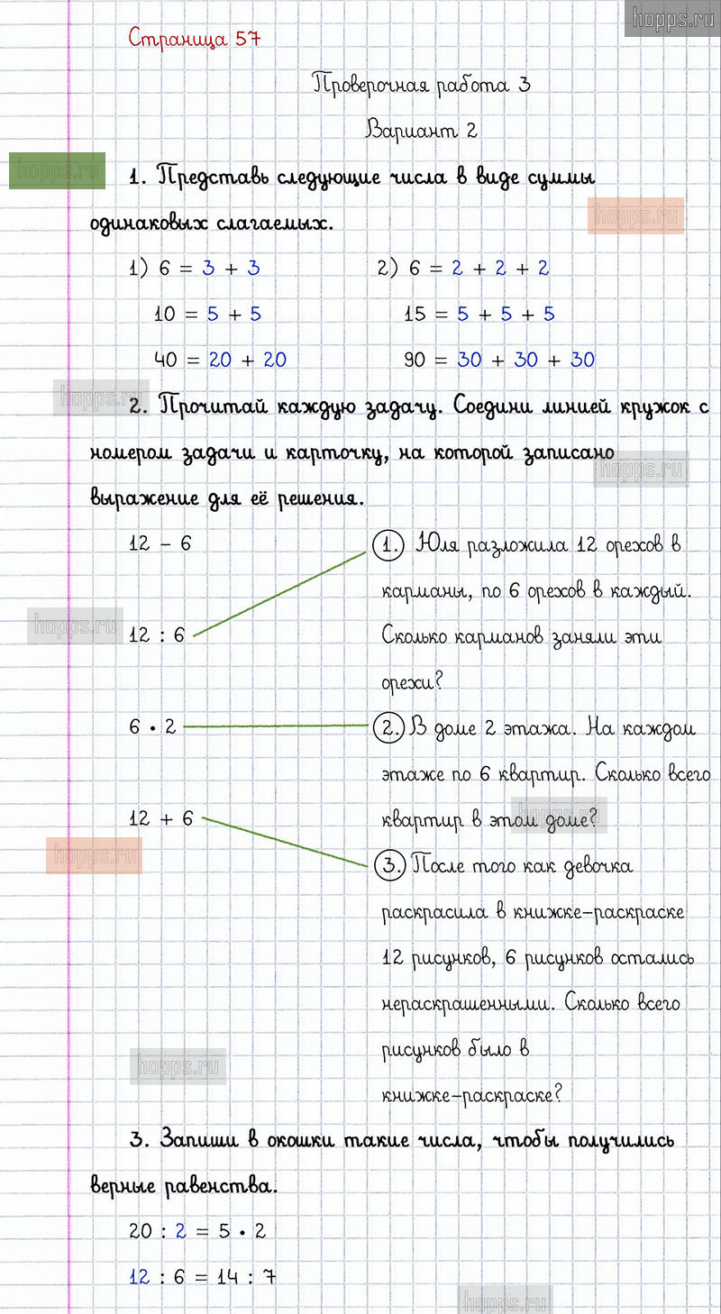 Подробные ответы к заданиям, расположенным на 57 странице проверочных работ по математике авторов С.И. Волкова для учащихся 2 класса. Умножение и деление. Проверочная работа 3, вариант 2.