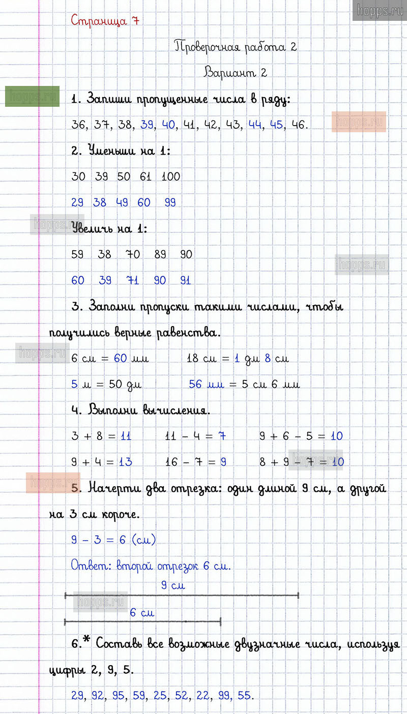 Подробные ответы к заданиям, расположенным на 7 странице проверочных работ по математике авторов С.И. Волкова для учащихся 2 класса. Нумерация. Проверочная работа 2, вариант 2.