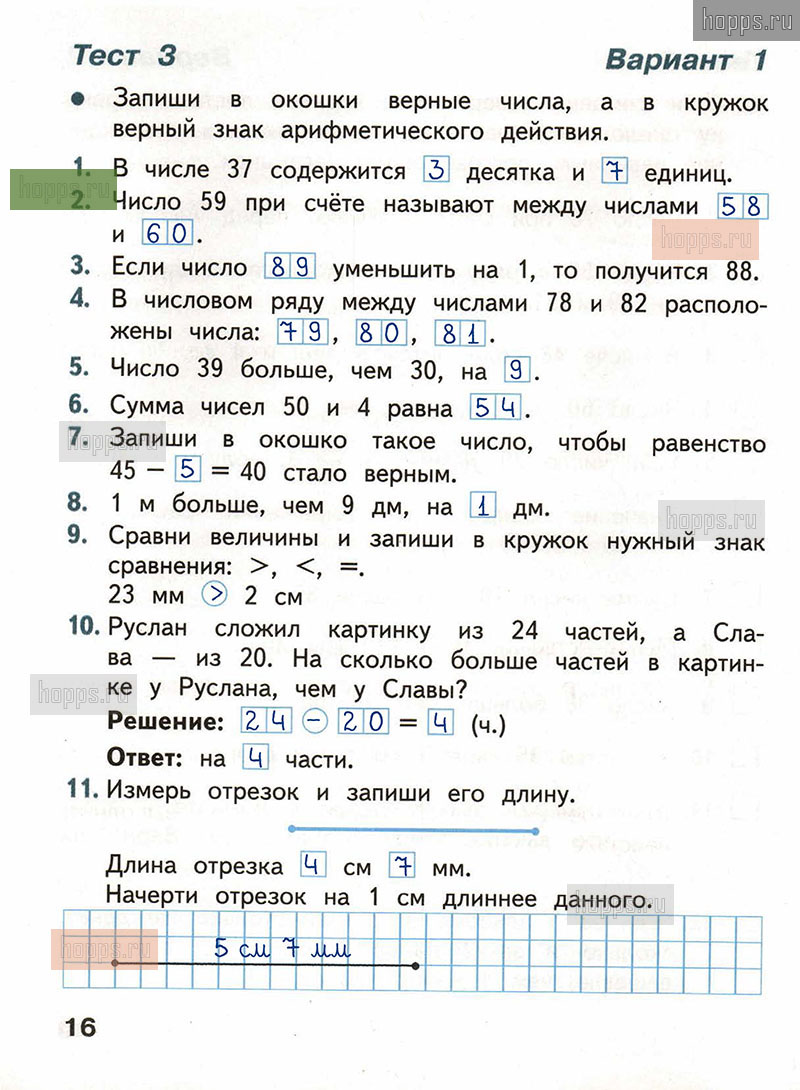 Подробные ответы к заданиям, расположенным на 16 странице тестов по математике автора С.И. Волкова для учащихся 2 класса.