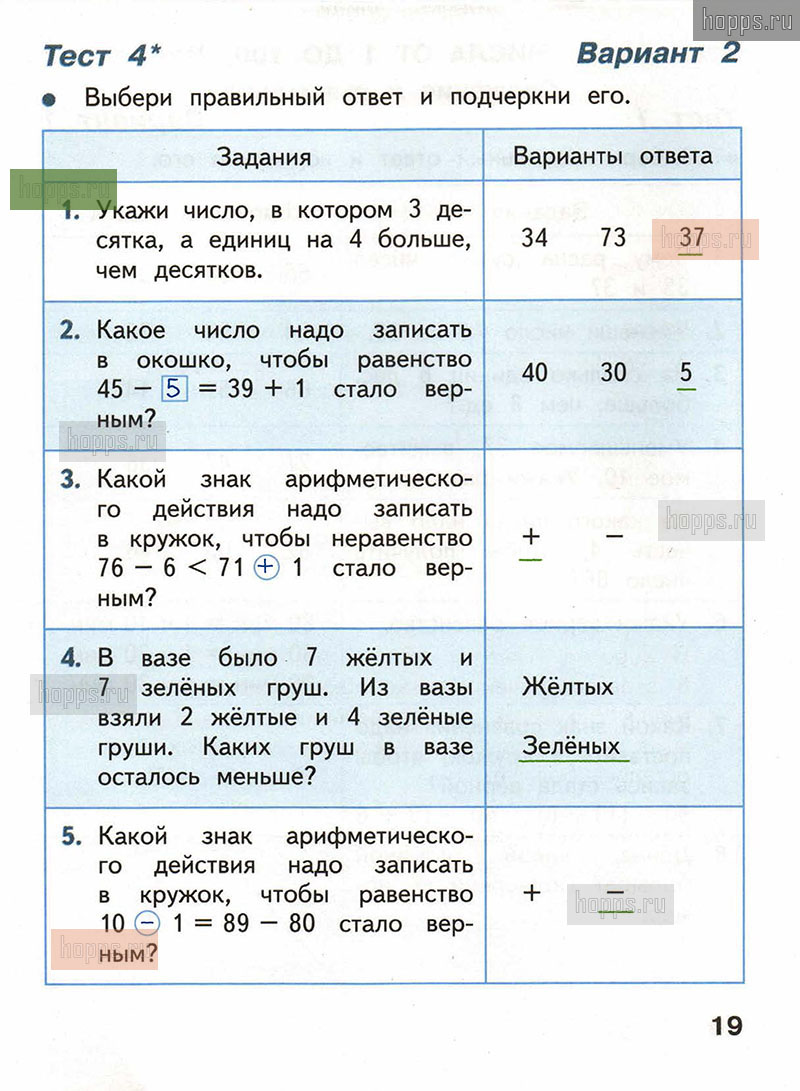 Подробные ответы к заданиям, расположенным на 19 странице тестов по математике автора С.И. Волкова для учащихся 2 класса.