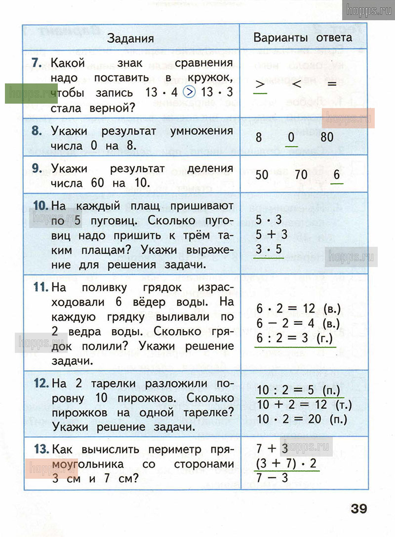 Подробные ответы к заданиям, расположенным на 39 странице тестов по математике автора С.И. Волкова для учащихся 2 класса.