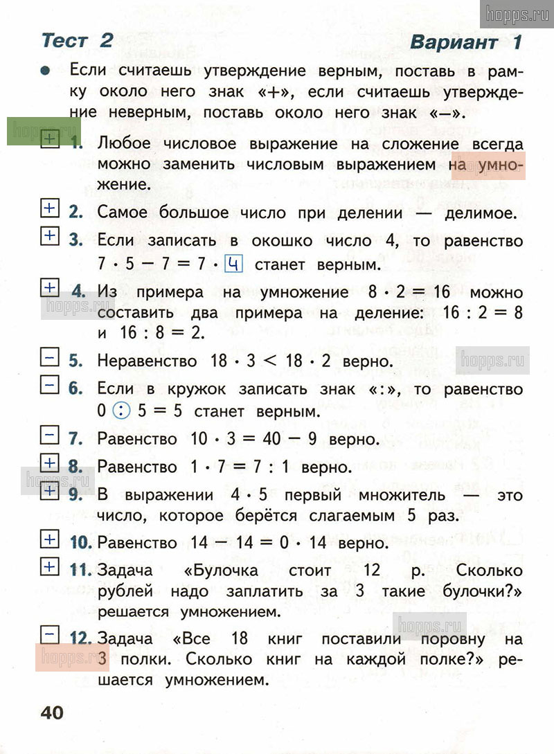 Подробные ответы к заданиям, расположенным на 40 странице тестов по математике автора С.И. Волкова для учащихся 2 класса.