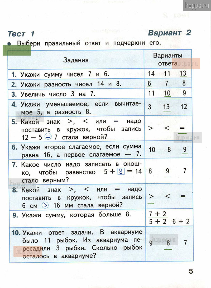 Подробные ответы к заданиям, расположенным на 5 странице тестов по математике автора С.И. Волкова для учащихся 2 класса.